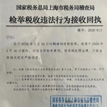 实名举报偷税漏税,上海税务局稽查局的接收回执都流出来了,这也太实了吧!